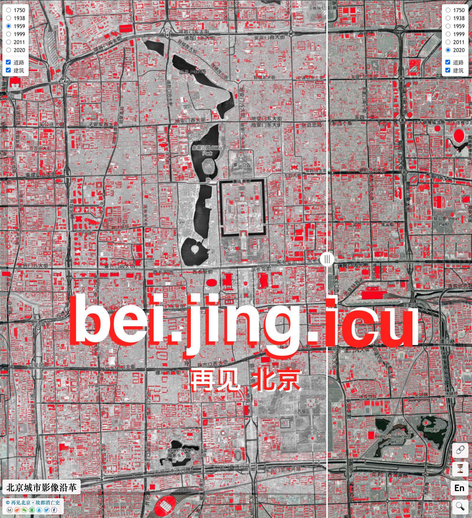 ?left=####&right=####$bldg=1: 定义左右视野所使用的图层, 和建筑物图层的开启与否, 主要用于页面上自动生成的视野分享链接.http://bei.jing.icu?left=1999&right=2020&bldg=1